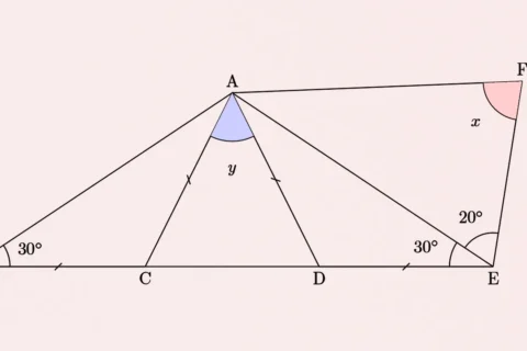 Na figura, BC=CA=AD=DE e o ângulo BÂF mede 160º.A medida de x+y, em grau, éA)…
